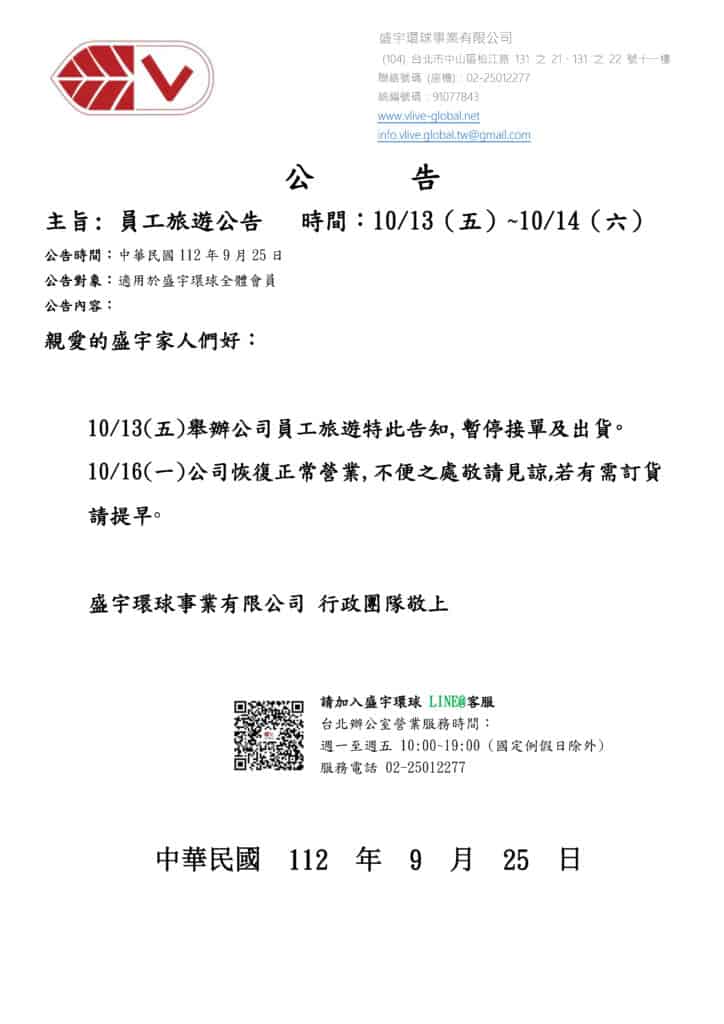 2023年 盛宇環球事業 員工旅遊公告 / 未分類 / 作者: 盛宇環球事業 Spread the love 2023年 盛宇環球事業 員工旅遊公告 2023-09-25 14:18 2023年 盛宇環球事業 員工旅遊公告