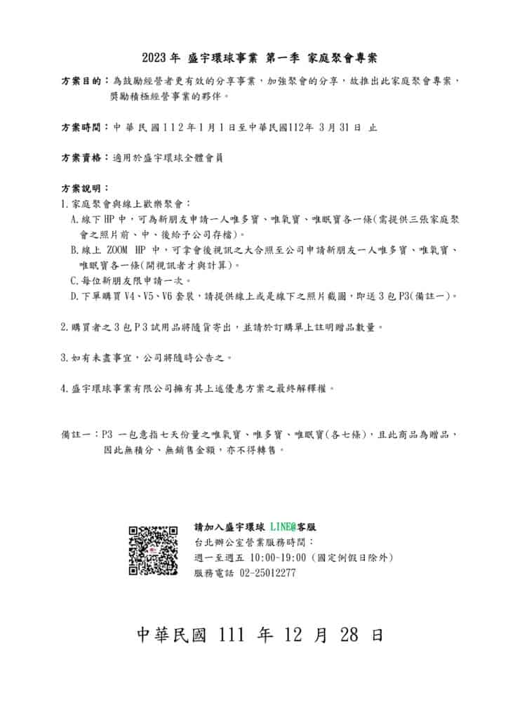 2023年 盛宇環球事業 第一季 家庭聚會專案 / 未分類 / 作者: 盛宇環球事業 Spread the love 2023年 盛宇環球事業 第一季 家庭聚會專案 2022-12-31 19:00 2023年 盛宇環球事業 第一季 家庭聚會專案