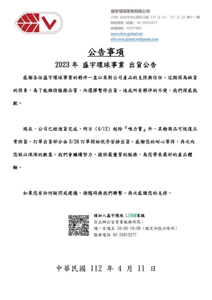 2023 盛宇環球事業 出貨公告 / 未分類 / 作者: 盛宇環球事業 Spread the love 2023 盛宇環球事業 出貨公告 2023-04-11 14:00 2023 盛宇環球事業 出貨公告