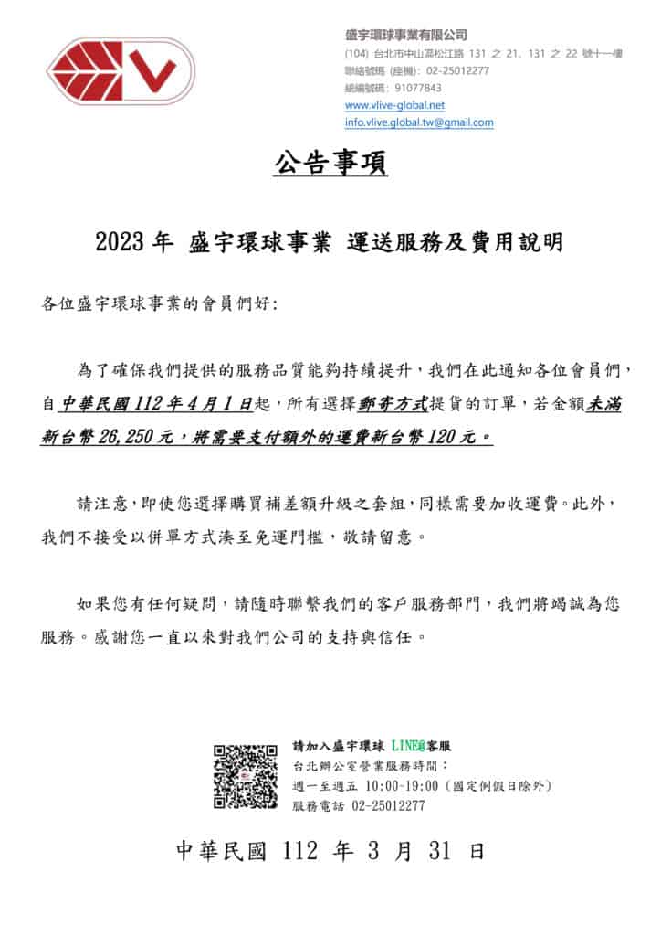 2023 台灣盛宇環球輔銷公告